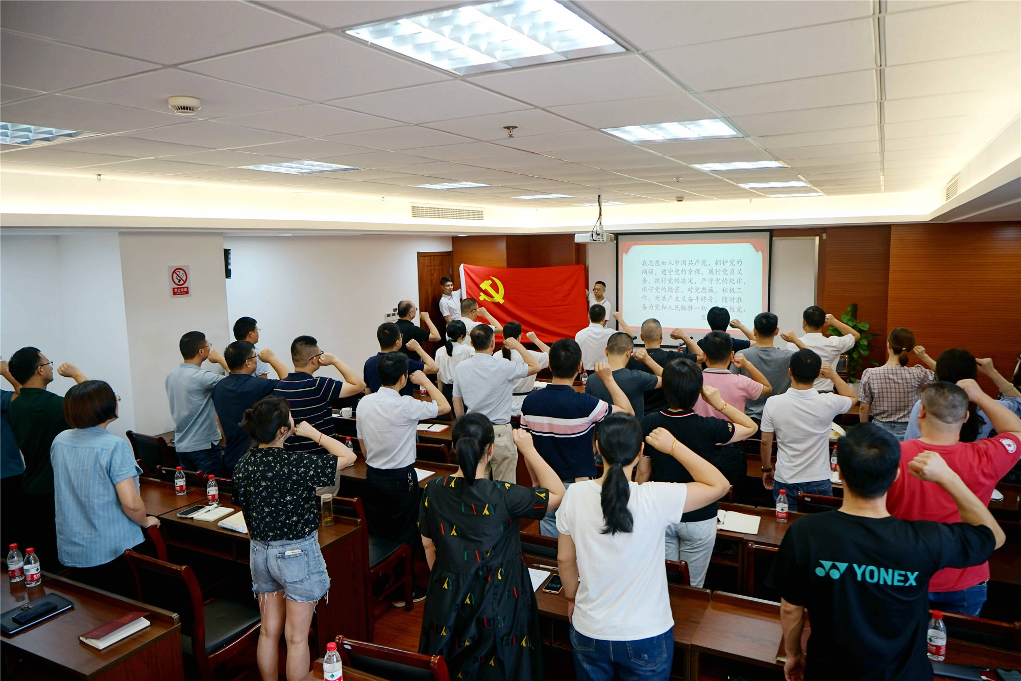 在褚書記帶頭領讀下,在座全體黨員面對黨旗,舉起右拳,莊嚴宣誓,以飽滿的熱情和昂揚的姿態重溫入黨誓詞,表達為黨的事業奮斗終身的決心和堅定信念。