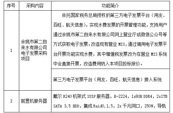 二、項目名稱:余姚市第二自來水有限公司電子發(fā)票采購項目