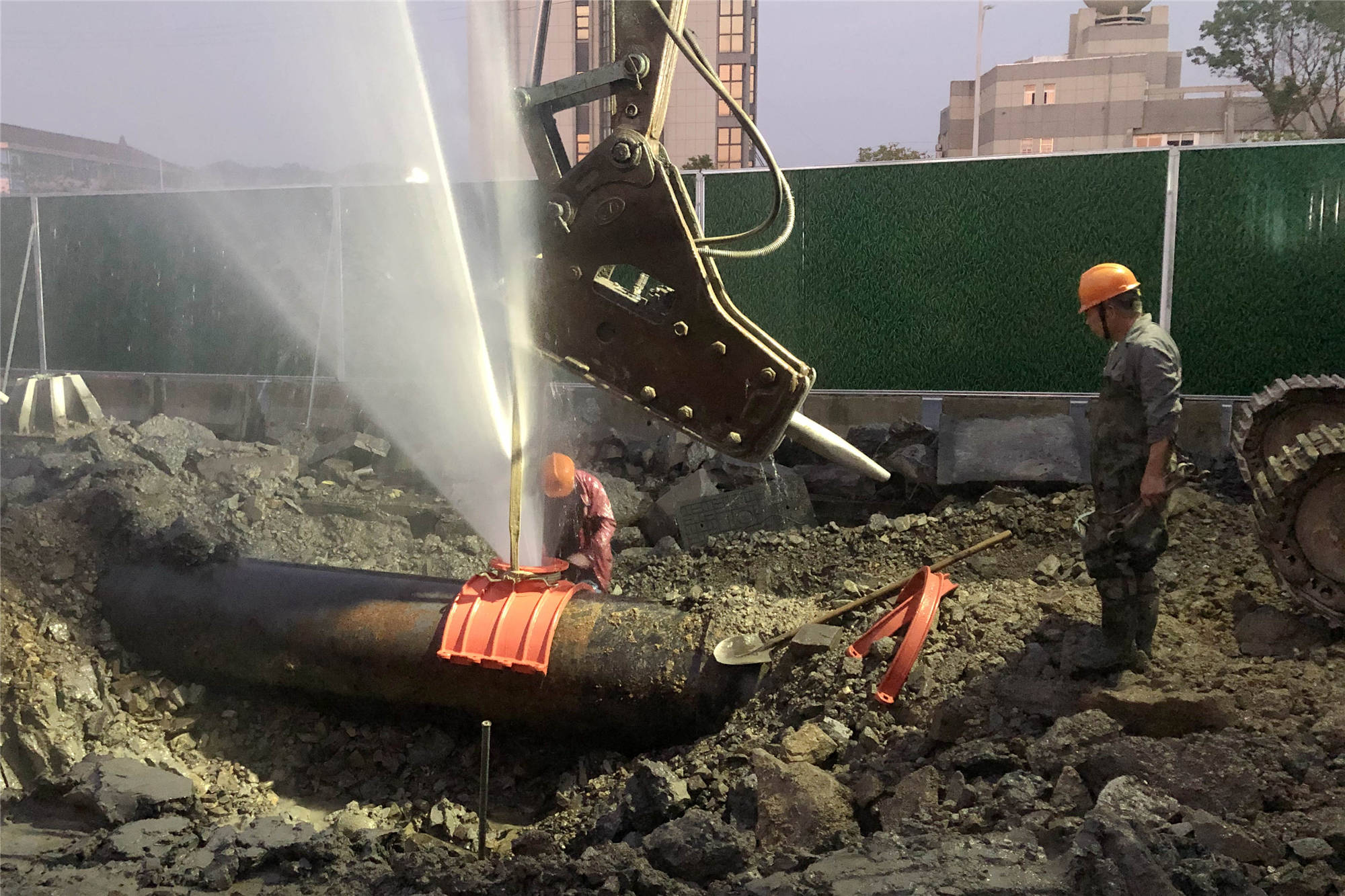 7月23日17時,敷設于城東路的DN800配水管由于道路施工挖掘不慎引起破裂,施工現場大量清水涌出。此時正處于傍晚用水高峰期,一但停水,勢必會影響附近居民正常的生活生產用水,對此,市自來水公司決定采用不停水方式搶修,用800*300的球墨管卡及300球墨盲板進行合抱作業,經過近1小時的緊張作業,搶修工作順利結束。