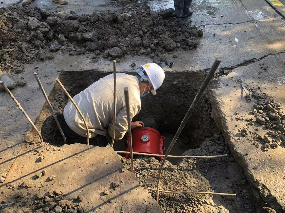 經現場查勘,初步確認為DN200水泥管破裂。根據現場實際情況,搶修隊開始進行開挖作業,至10時30分左右成功修復漏點。整個過程不停水搶修,未對周邊用戶用水產生較大影響。