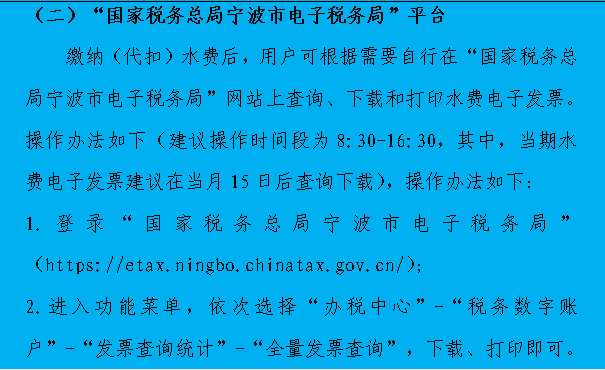 用戶在繳納(代扣)水費(fèi)后,可以通過(guò)“余姚市自來(lái)水公司”微信公眾號(hào)平臺(tái)、“國(guó)家稅務(wù)總局寧波市電子稅務(wù)局”網(wǎng)站、營(yíng)業(yè)大廳(所)服務(wù)窗口三種途徑獲取電子發(fā)票,切實(shí)讓用戶“多走網(wǎng)絡(luò),少跑馬路”,從“從最多跑一次”到“一次不用跑”,不斷優(yōu)化供水營(yíng)商環(huán)境。