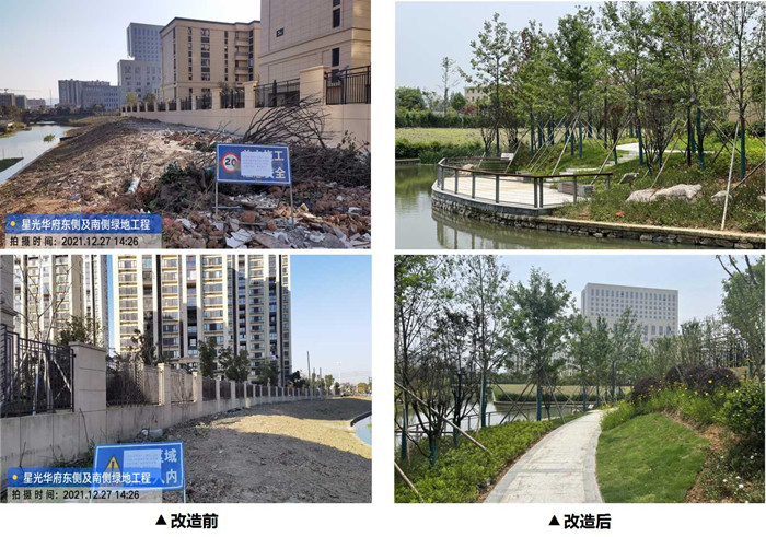 日前,星光華府東側及南側沿江綠地工程改造完成。該綠地項目北至南蘭江西路,西至現狀河流邊線,東側與南側至現狀河流,從今年2月開始施工建設,投資約320.06萬元,總用地面積約5674.3平方米,包括現狀河流北側園地(寬1.5米)和休息坐凳,面積約644.6平方米,綠化面積約5029.7平方米。